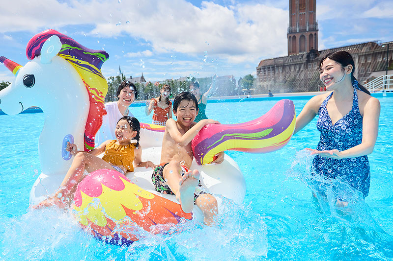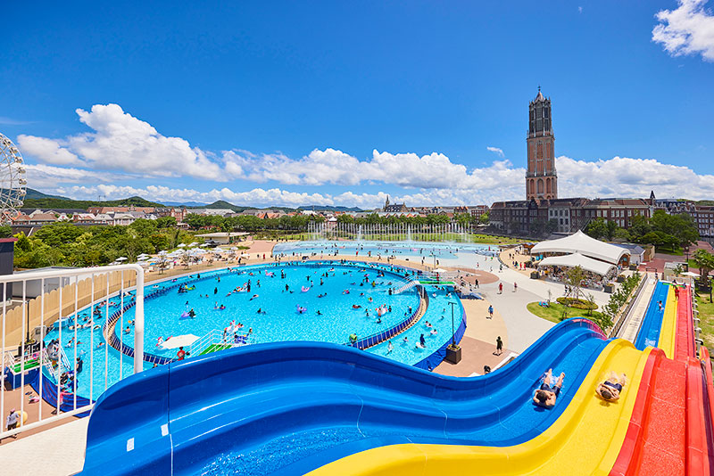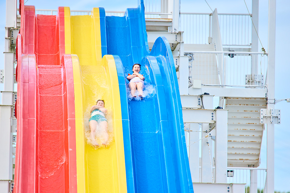 開放感あふれるプールやメガスライダーで