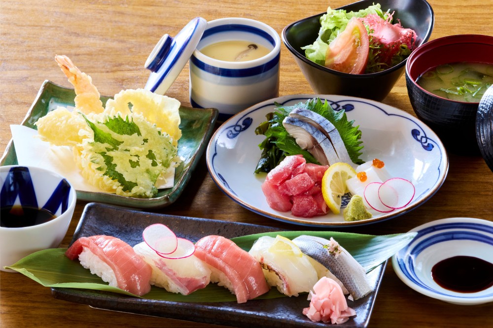 新鮮な魚が自慢の、長崎ならではの握り寿司を味わえる和食レストラン。おすすめは、近海の魚を使った握り寿司に、天ぷらや刺身を添えた贅沢な寿司御膳です。玄界灘の鷹島(たかしま)で育った本まぐろを使用した寿司や丼のほか、お子様メニューや五島うどんもご用意。ご家族そろって、長崎の海の恵みをご堪能ください。
