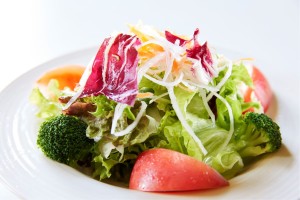 [สลัด น้ำสลัดเลมอน] ผักต่างๆ น้ำส้มสายชู (น้ำส้มสายชูไวน์ขาว: แอลกอฮอล์/องุ่น) น้ำมะนาว น้ำตาลทราย เกลือ น้ำมันมะกอก