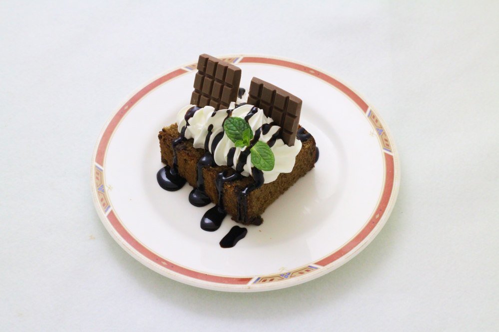 長崎名物のカステラにチョコレートを添えた当店限定のスイーツです。