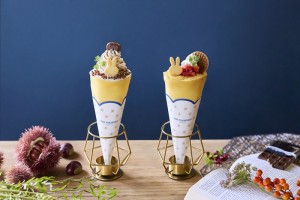 เครปเกาลัดฤดูใบไม้ร่วงและเครปคัสตาร์ดบรูเล่เย็นๆ หวานๆ ได้รับการตกแต่งด้วยคุกกี้ Miffy สุดน่ารัก ทำให้ขนมหวานเหล่านี้ทั้งน่ารับประทานและอร่อย