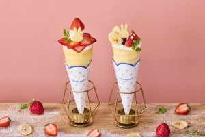 เครปเปรี้ยวหวานราดด้วยสตรอเบอร์รี่มากมาย และเครปสุดหรูพร้อมกล้วยและสตรอเบอร์รี่