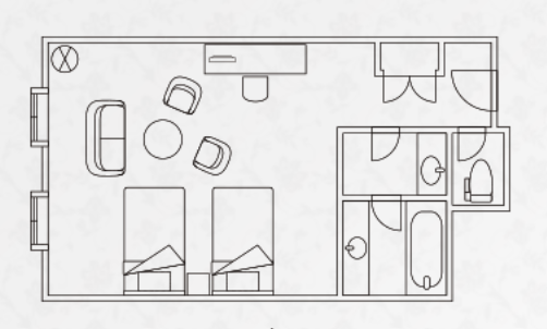 ・หากเข้าพักในห้อง 3 หรือ 4 ท่าน จะเพิ่มเตียงเสริม (110 ซม. x 195 ซม.)