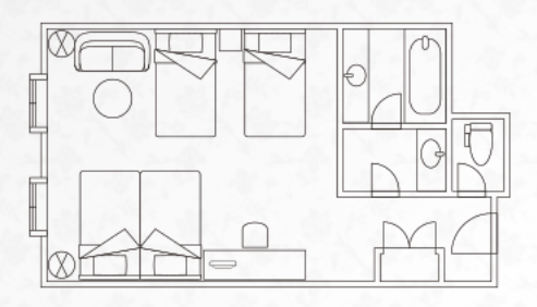 แต่ละชั้นมีการออกแบบที่แตกต่างกัน โดยชั้นสองมีดีไซน์แบบโมเดิร์น ส่วนชั้นสามและสี่มีห้องพักสไตล์ยุโรปที่งดงามและหรูหรา