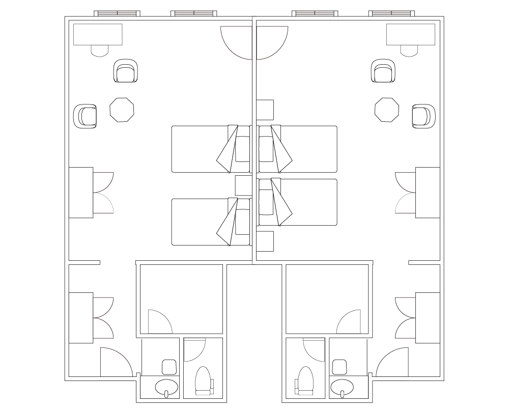 นี่คือห้องพักประเภทหนึ่งที่ห้องพัก 2 ห้องเชื่อมต่อกันด้วยประตูภายใน โดยแต่ละห้องมีห้องน้ำ 2 ห้องและห้องสุขา 2 ห้อง