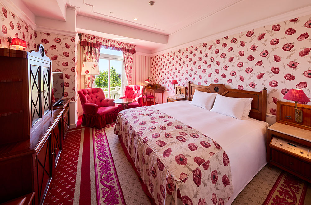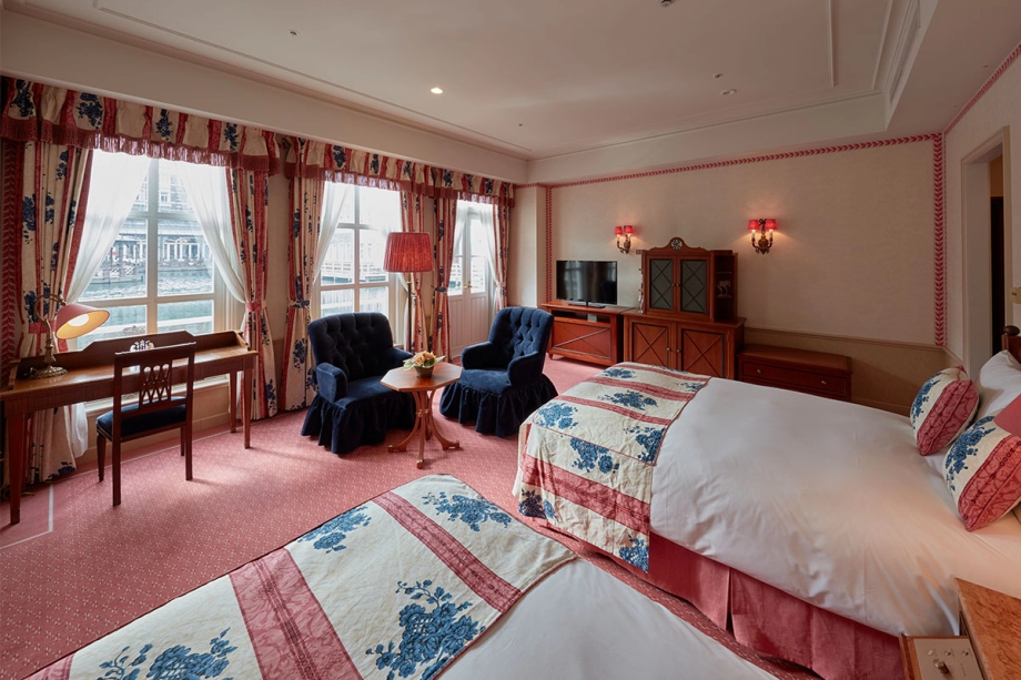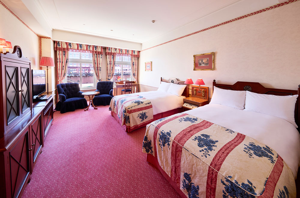 ヨーロッパの重厚感ある調度品で設え、ベッドサイズはセミダブルクラスと、