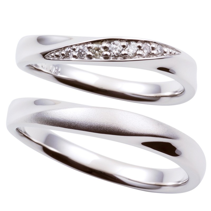 ウェーブラインにエッジをもたせ、上品でシャープな印象に仕上げたマリッジリング。