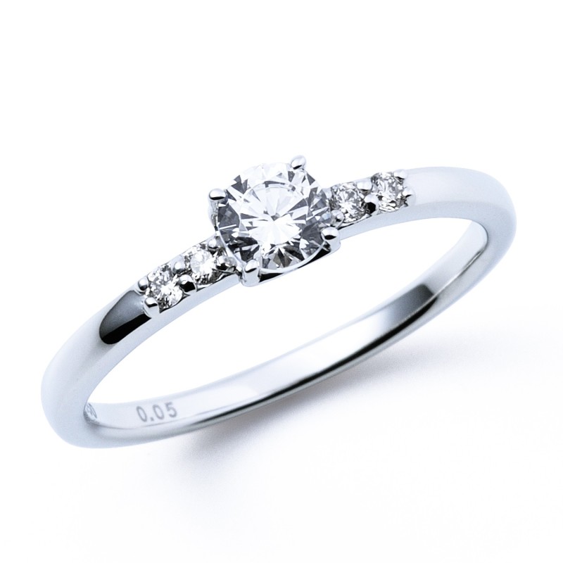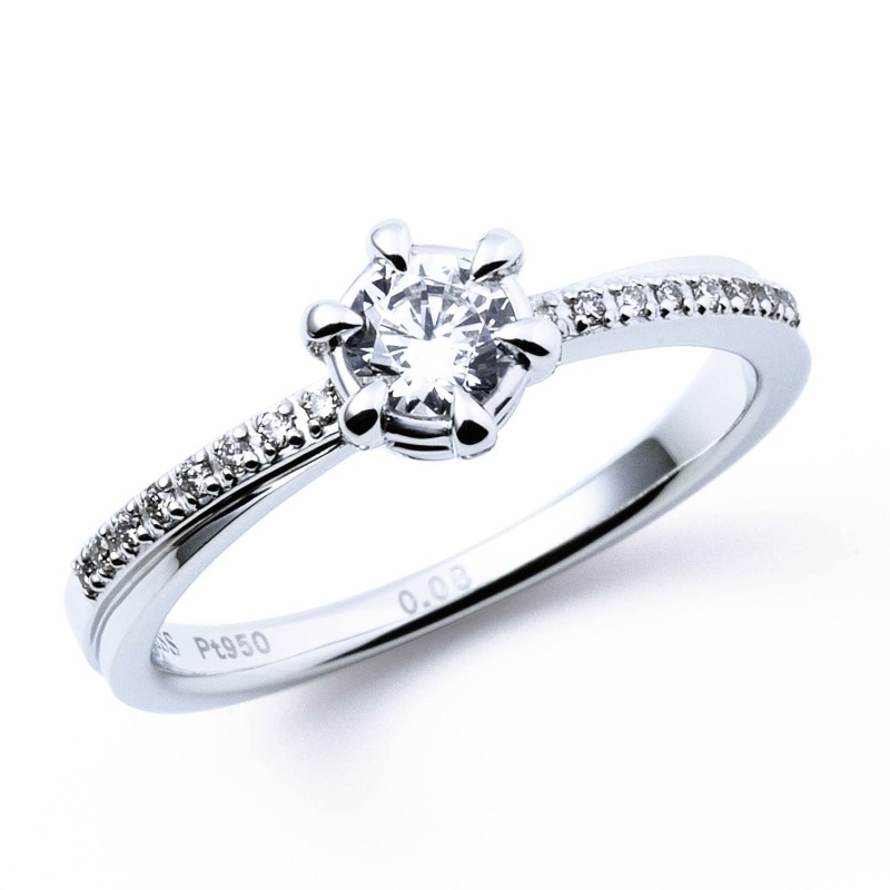 ダイヤモンドの美しさを引き立たせ、「一途な愛」を表すストレートラインのエンゲージリング。