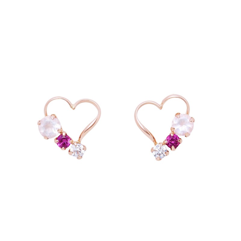 思わず目を引くルビーカラーのストーンと、透明感の美しいクリアカラーのストーンが耳元で華やかさを演出。